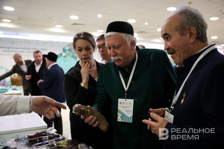 Перед началом заседания предприниматели развернули выставку с халяль-продукцией. Условно ее можно было назвать «казылык шагает по стране», потому что один торговый ряд почти весь был заполнен священной кониной. Образцы колбасы из натуральной конины с салом привезли сельхозкооперативы из Мордовии, Пензы, Татарстана и Чувашии. Рустам Минниханов мог попробовать каждый «сорт», но старался больше рассказывать о продукции руководителю Федеральной службы по аккредитации Дмитрию Вольвачу. Федеральный орган уполномочен выдавать сертификаты халяль наряду с Духовным управлением мусульман. Кстати, ценник начинался от 2 тысяч рублей за кг.