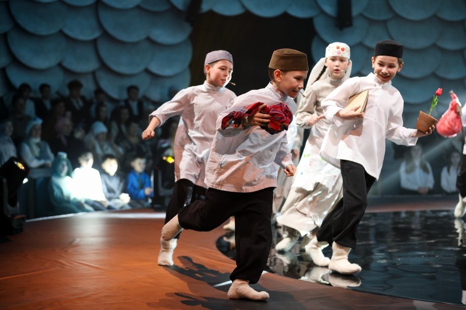 Ведущими вечера стали камаловский актер Фанис Зиганша и ведущая «ШАЯН ТВ» Марьям Заппарова. Вместе с ними на сцену вышли участники детской студии «Апуш», которые изображали то юных жителей деревни, то шакирдов, сочетая хитрые диалоговые мизансцены с играми. Отметим, что сценарий праздника написал Альберт Шакирова, а режиссером стала руководитель «Апуша» Алия Файзрахманова.
