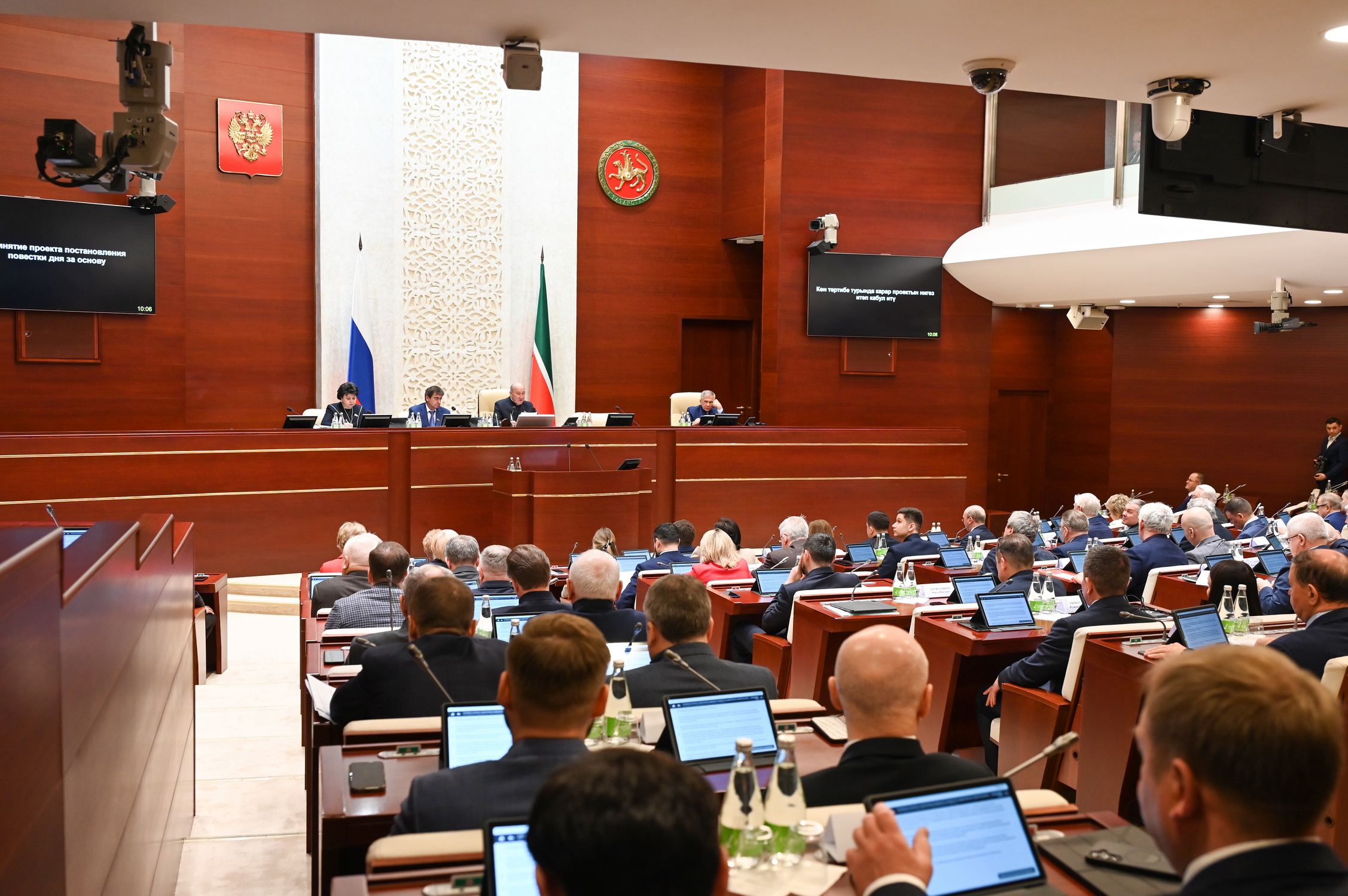 На XX заседании Госсовет Татарстана рассматривал отчет правительства. Премьер-министр республики Алексей Песошин выразил обеспокоенность перспективами строительного комплекса республики, приподнял завесу над расходами бюджета в 2026 году и объяснил, почему официально заявленный рост тарифов на ЖКУ не бьется с суммами в счетах-фактурах, которые получают жители республики. А депутат Альберт Ягудин (фракция КПРФ) сделал несколько ярких заявлений — среди которых предложение сдвинуть стрелки часов в республике на 2 часа вперед. Подробности о заседании — в материале «Реального времени».