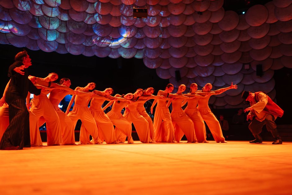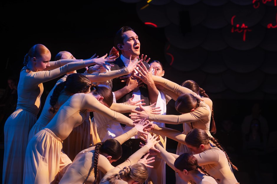 Еще одна часть оперы — это 12 студенток кафедры хореографического искусства Казанского государственного института культуры в палаццо и водолазках песочно-телесного цвета. Ведомые хореографом Владиславом Мирошниченко, они символизировали собой лес (видимо, мимикрируя под цвет дерева) и, в целом, создавали красивый фон.