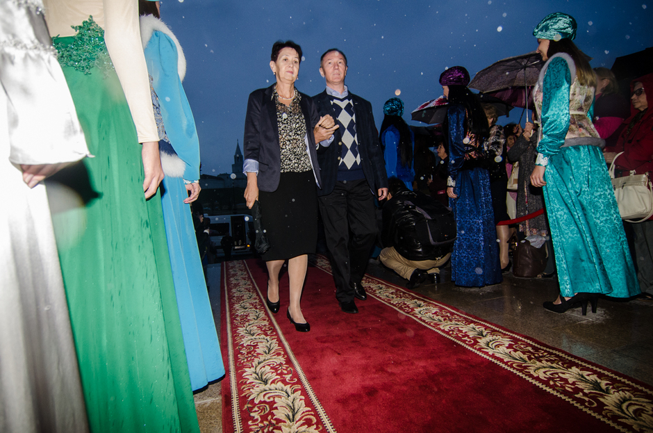 Церемония прохода гостей и участников по красной дорожке, которую так любят созерцать казанцы, шла под дождем, что, впрочем, не убавило количество публики. По красной дорожке шли действительно известные кинематографисты и те, кто, кажется, попал в число приглашенных по иронии судьбы. Впрочем, эта эклектика продолжилась и в зале «Пирамиды».