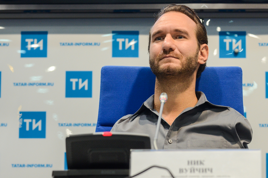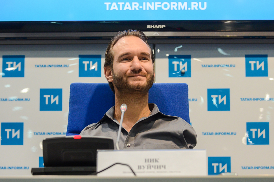Накануне в Казань наконец-то со своим выступлением приехал известный мотивационный оратор из Австралии Ник Вуйчич. Человек, который родился без рук и ног, но смог стать счастливым и продолжает делать счастливее других людей, перед своим выступлением на пресс-конференции в «Татар-информ» рассказал журналистам, почему не нужно довольствоваться мимолетными удовольствиями типа алкоголя, секса и наркотиков, а стоит обратить свой взгляд к вечному и незыблемому. А вот о том, что российскую команду паралимпийцев не допустили до игр в Бразилии, Вуйчич с неприятным удивлением узнал от корреспондента «Реального времени».