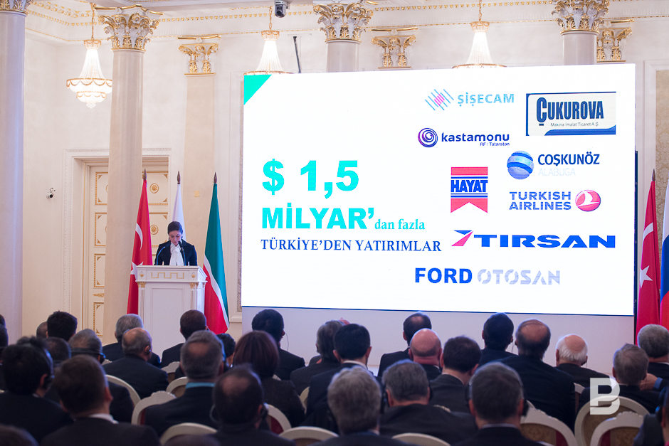 Первым делом гостям рассказали об экономических показателях и инвестиционном потенциале республики, делая акцент на том, что по количеству совместных предприятий Турецкая Республика занимает в Татарстане первое место. Министр промышленности и торговли РТ Альберт Каримов отметил, что в 2015 году внешнеторговый оборот между республиками составил более 356 млн долларов, для сравнения он привел данные 2012 года, когда этот показатель превышал 900 млн долларов. В целом, в прошлом году внешнеторговый оборот Татарстана превысил 12 млрд долларов, а более половины промышленной продукции Татарстана предназначено для экспорта