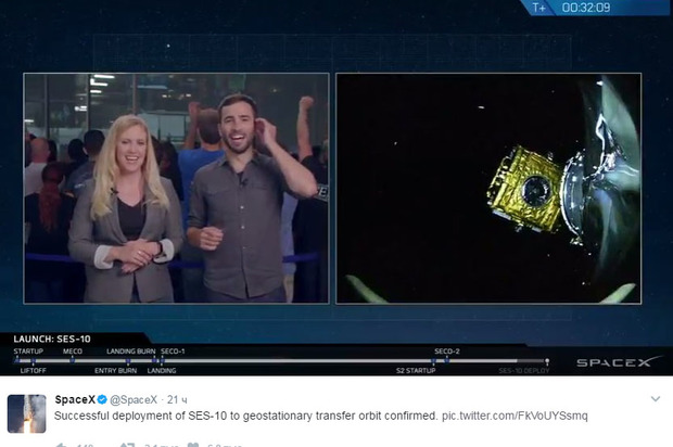 Компания Илона Маска SpaceX использовала одну и ту же первую ступень ракеты для повторного запуска в космос, говорится в сообщении организации в соцсетях. Falcon 9 стартовала с мыса Канаверал во Флориде, унося с собой на орбиту спутник SES-10. Через несколько минут после запуска первая ступень корабля успешно вернулась и приземлилась на морской платформе.