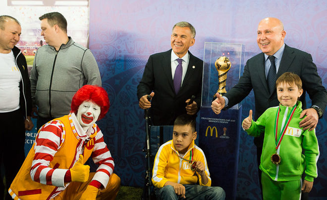 Сегодня в Казани прошла церемония награждения участников программы «На Кубок конфедераций FIFA 2017 вместе с «Макдоналдс». В церемонии приняли участие президент РТ Рустам Минниханов, министр спорта республики Владимир Леонов, президент компании «Макдоналдс» в России Хамзат Хасбулатов.