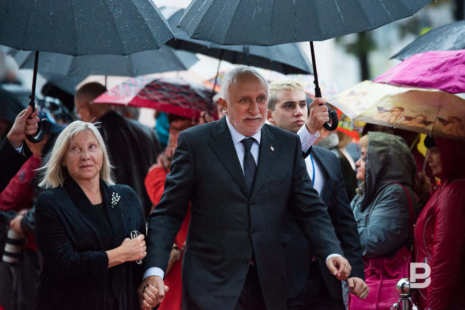 Несмотря на сильный дождь, возле оперного театра была расстелена традиционная красная дорожка, по которой прошествовали почетные гости фестиваля, проводимого в Казани в тринадцатый раз. Зал был уже полон, когда в него в сопровождении министра культуры Айрата Сибагатуллина вошел спикер татарстанского парламента Фарид Мухаметшин. Впрочем, и после этого церемония еще не началась, похоже, ждали чуть опоздавшего Виктора Мережко. Тот не спешил сесть на свое место и долго обнимался с сидевшим в его же ряду Виктором Гаркалиным.