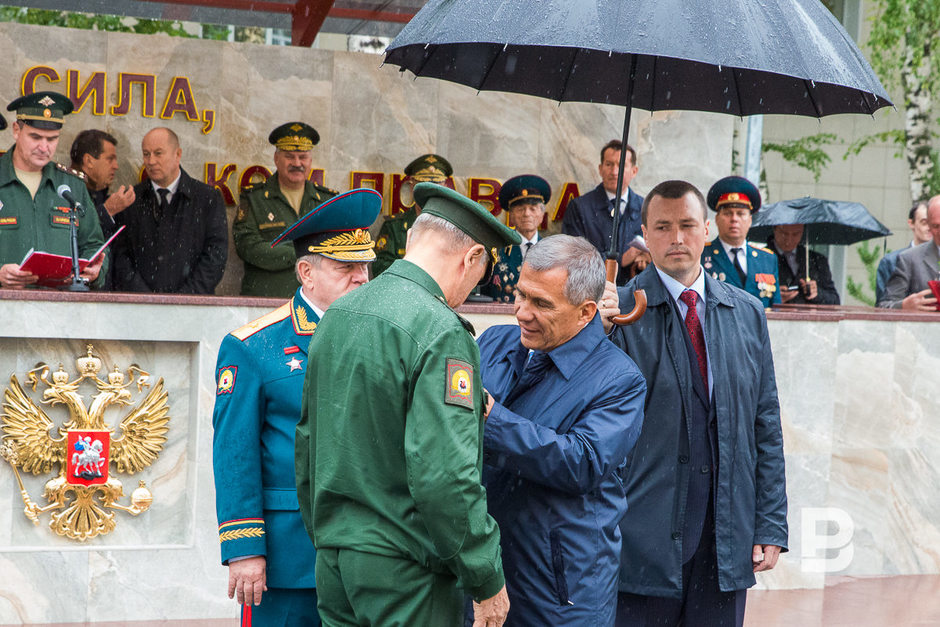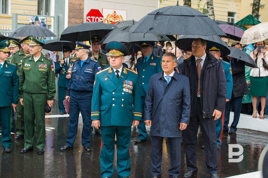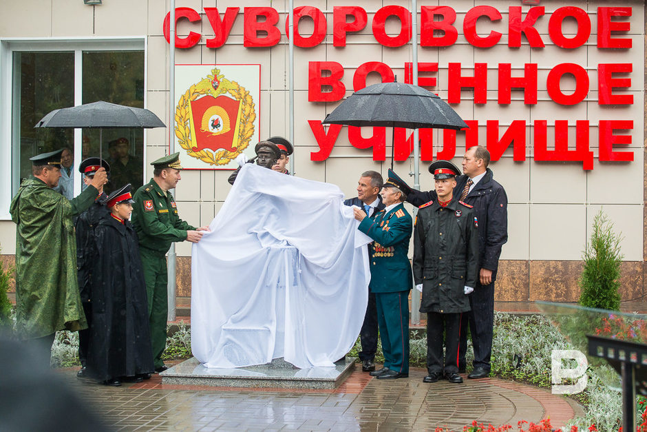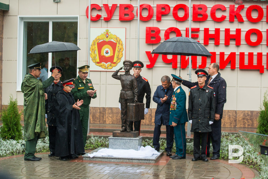 Сегодня на территории Казанского суворовского военного училища открылся памятник суворовцам. В церемонии открытия и торжественной линейке принял участие президент Татарстана Рустам Минниханов. Сопровождали президента заместитель командующего войсками Центрального военного округа генерал-лейтенант Евгений Устинов и начальник Приволжского регионального центра МЧС России генерал-полковник внутренней службы Игорь Паньшин.
