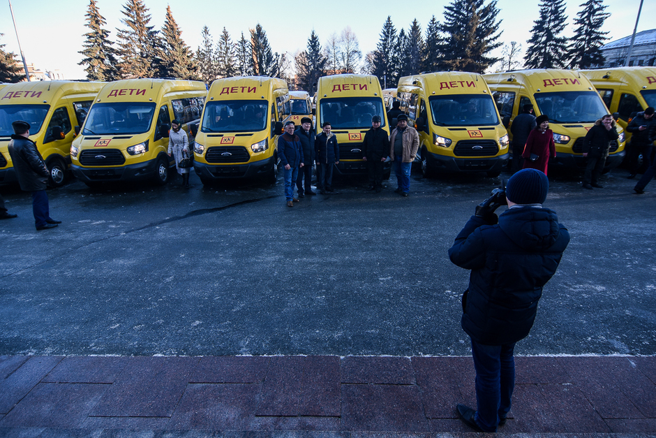 Сегодня президент Татарстана Рустам Минниханов вручил ключи от новых школьных автобусов главам муниципальных районов республики. Автобусы для перевозки детей (11 штук марки Ford Transit и 40 - «ГАЗ-322121) получены по федеральной программе. Они отправятся в 26 муниципальных районов республики.