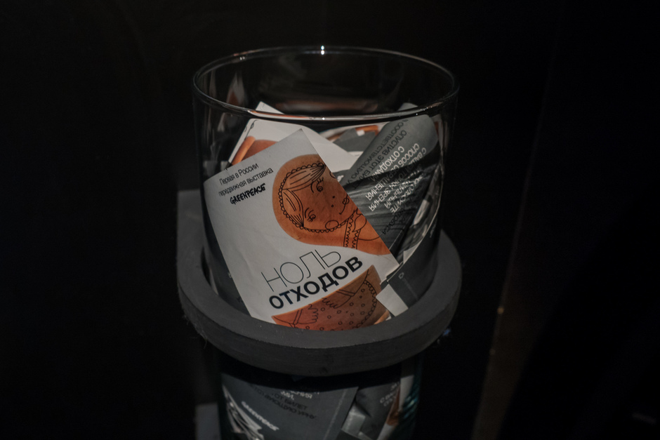 Экспозиция, расположенная в автобусе Гринписа, переделана под художественное пространство и условно поделена на две части — «Ад отходов» и «Рай отходов». Выставка призвана ответить на актуальный для общественности вопрос — «Что делать с мусором в России?»