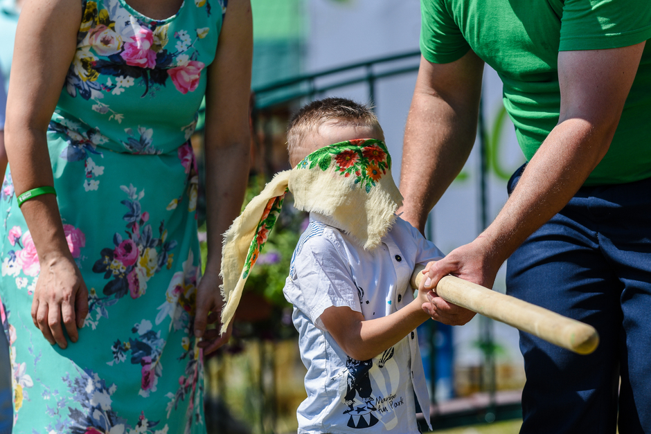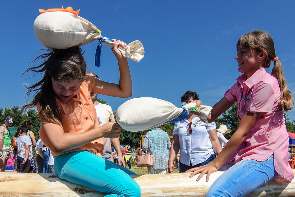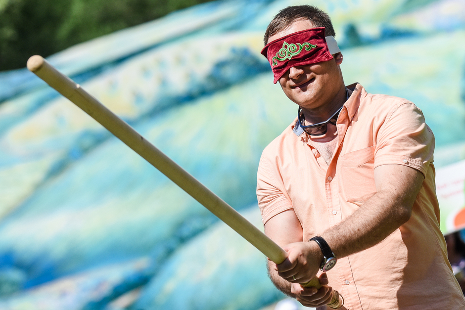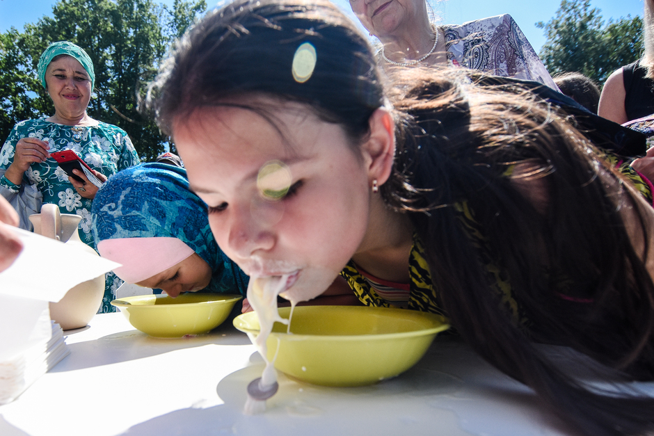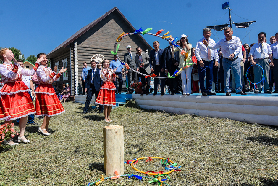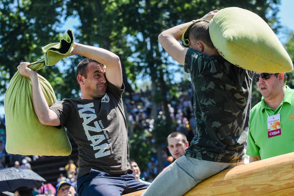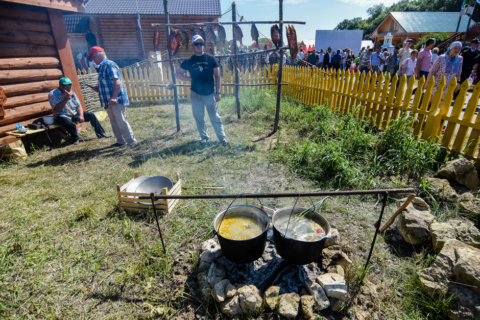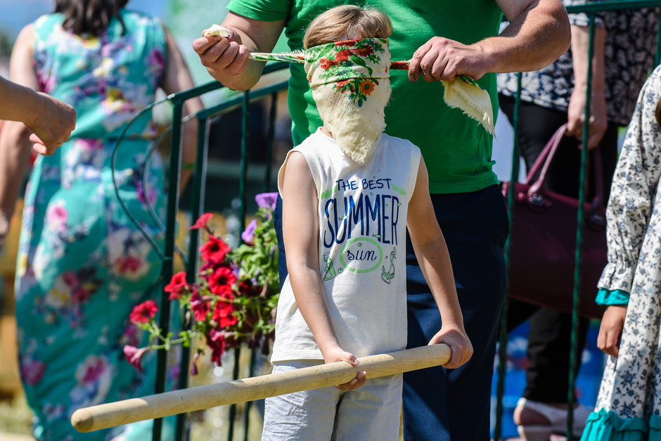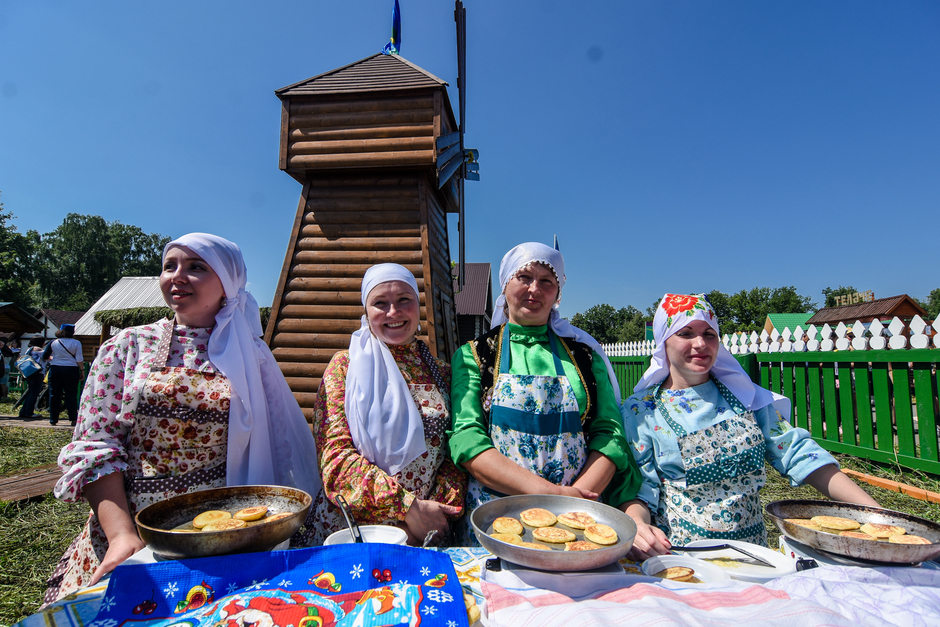 Рустам Минниханов посетил почти каждое подворье, представленное на празднике, где участвовал в разных конкурсах — кидал обруч и деревянные ложки, а также купил мешочек муки, чеканил монету, повесил полотенце, вручил призы батырам и армрестлерам, отведал ухи и мяса.