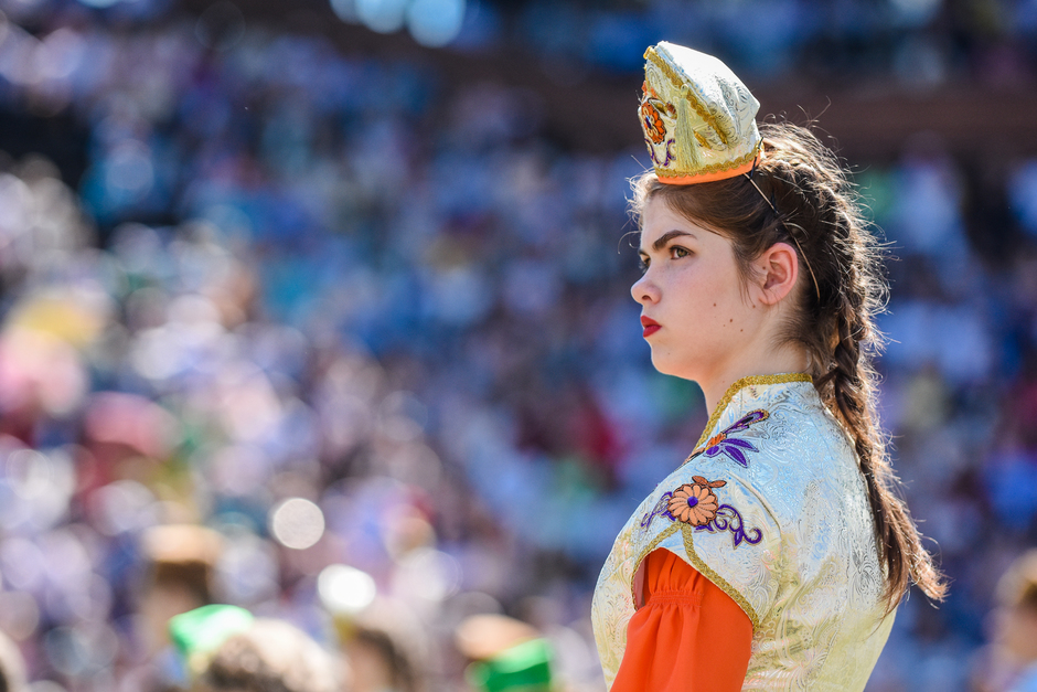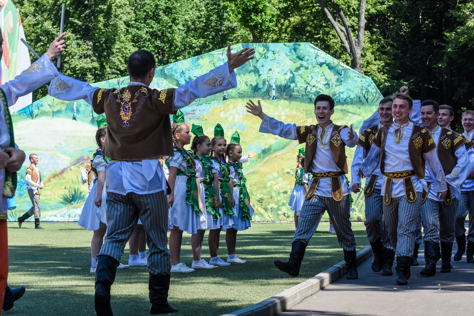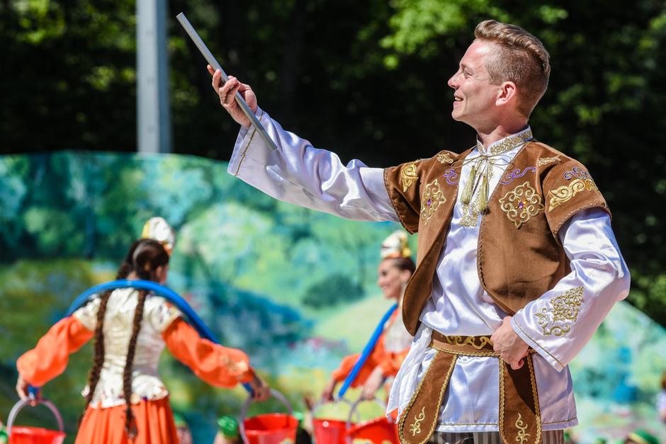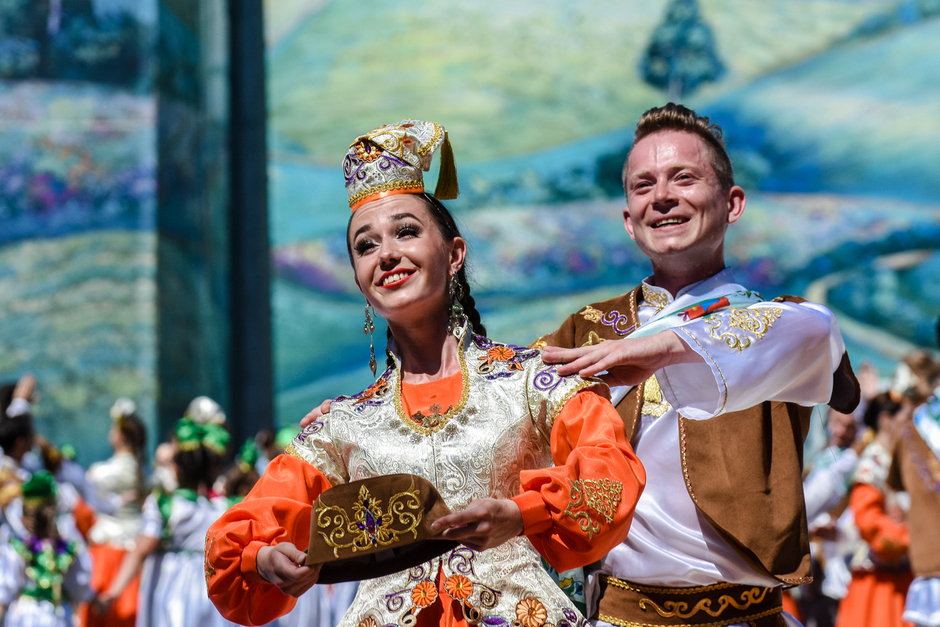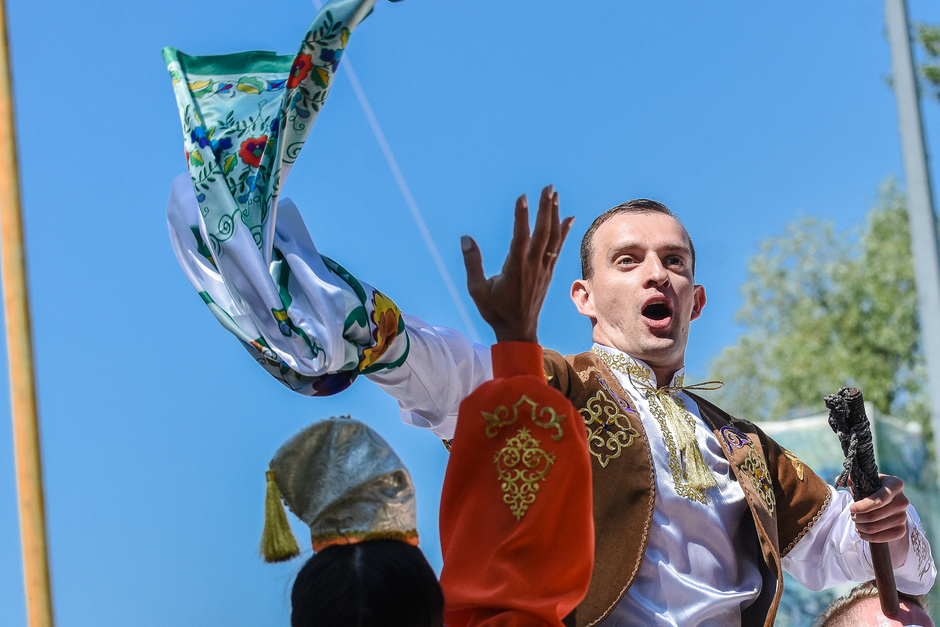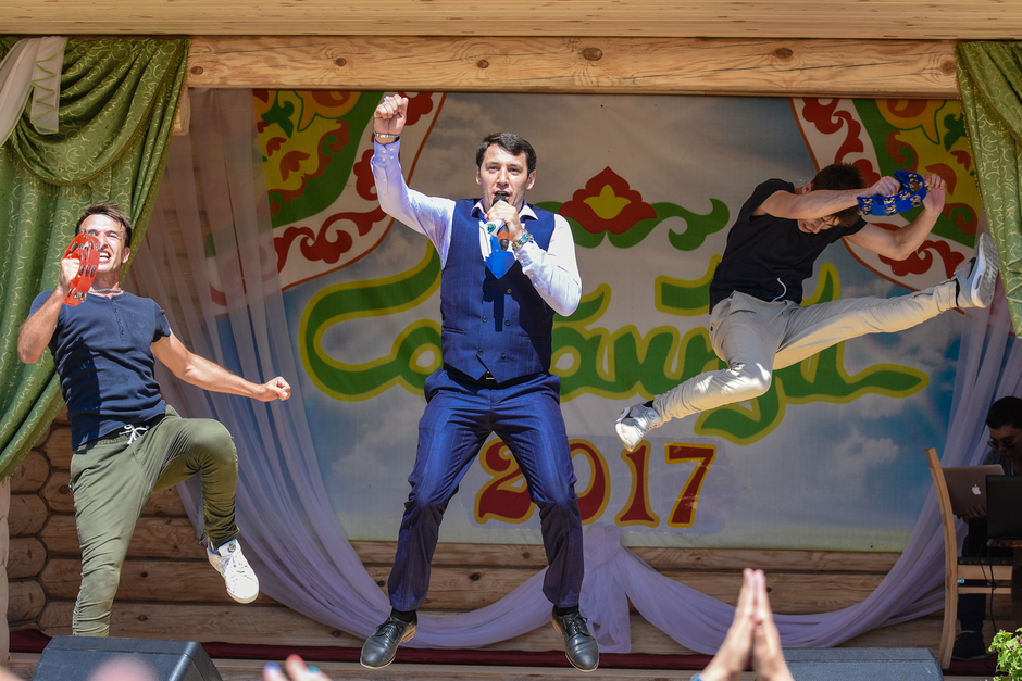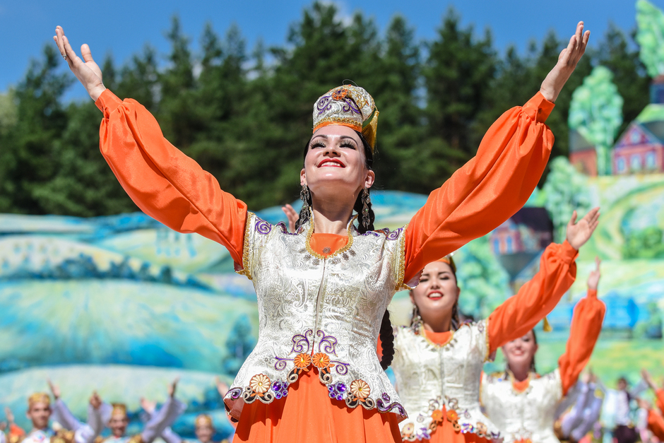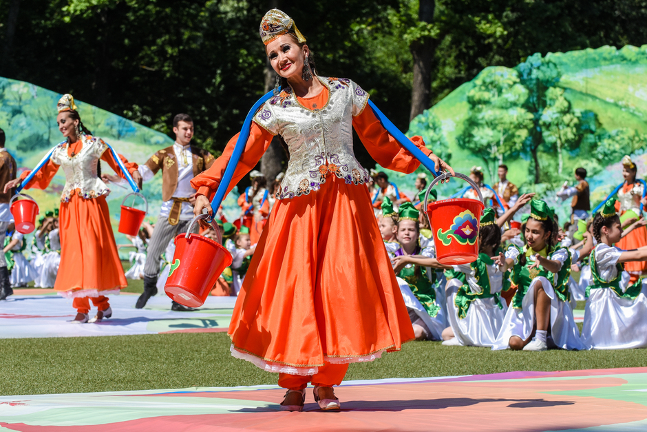 На майдане прошло масштабное театрализованное представление, затем праздничная программа продолжилась концертом с участием звезд татарской эстрады и состязаниями по национальной борьбе корэш.