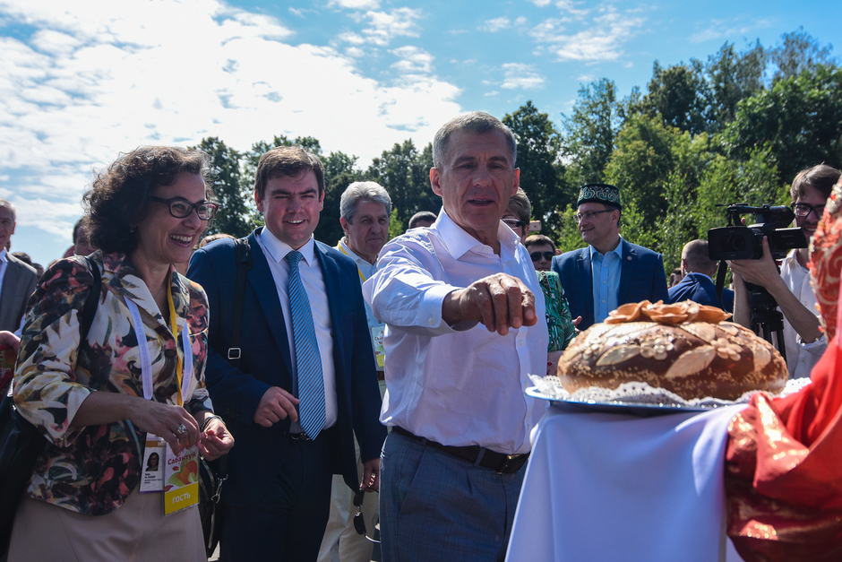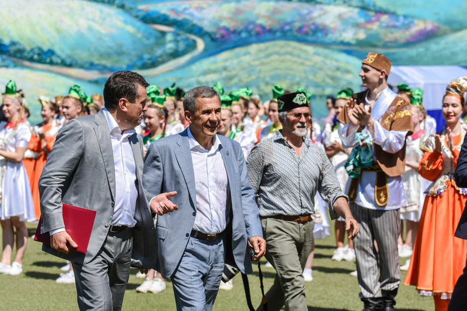 В Березовой роще поселка Мирный сегодня развернулся главный татарский национальный праздник — Сабантуй. Разнообразие сельских подворий, организованных 11 муниципальными районами, оценили президент РТ Рустам Минниханов, руководитель аппарата президента РТ Асгат Сафаров, мэр Казани Ильсур Метшин. Также праздник посетила заместитель генерального директора ЮНЕСКО Нада Аль-Нашиф и другие почетные гости.