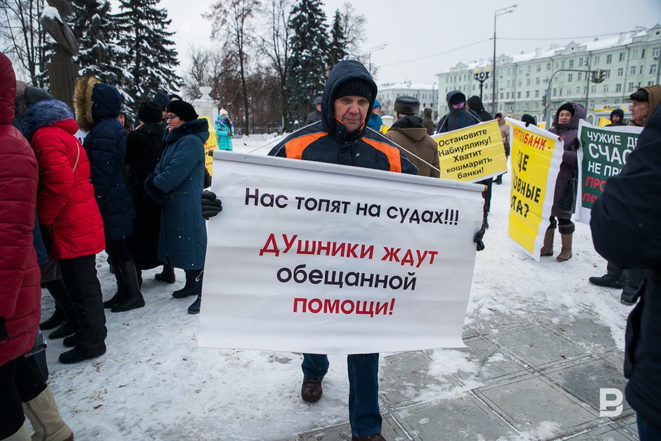 Клиенты рухнувших татарстанских банков собрались сегодня на очередной митинг в парке "Крылья Советов". Вкладчики-юрлица, потерявшие в банках свои деньги, отметили своеобразную годовщину: с 15 декабря прошлого года Банк России на три месяца ввел мораторий на удовлетворение требований кредиторов ТФБ, а в марте отозвал лицензию финучреждения.