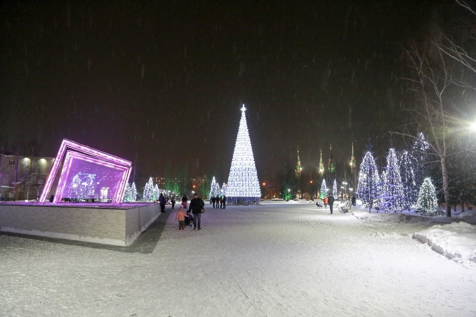 В обновленном сквере имени Лемаева Нижнекамска открыли елочный городок ТАИФ-НК. В парке установили шестнадцатиметровую елку, которую доставили из Москвы. Дерево украсили в сине-белой цветовой гамме и развесили на нем сотни гирлянд. В сквере «поселились» северные олени и белые медведи, а десятки живых елок украсили светодиодными гирляндами. По традиции, в сквере также установили гигантскую елочную игрушку в форме шара. Елочный городок ОАО «ТАИФ-НК» будет работать до конца января.