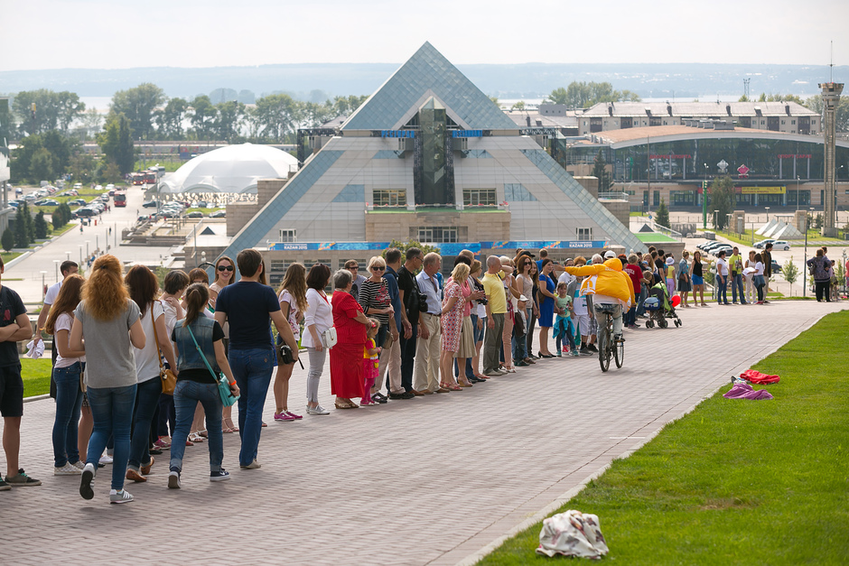 Несколько тысяч человек собрались сегодня в центре Казани, чтобы обнять Кремль. Флешмоб от инициативного проекта «I Help Kazan» ставил целью повышение туристической привлекательности города. Участников флешмоба угостили чак-чаком весом в несколько тонн, расписанным элементами татарского орнамента и выполненным в виде Спасской башни.