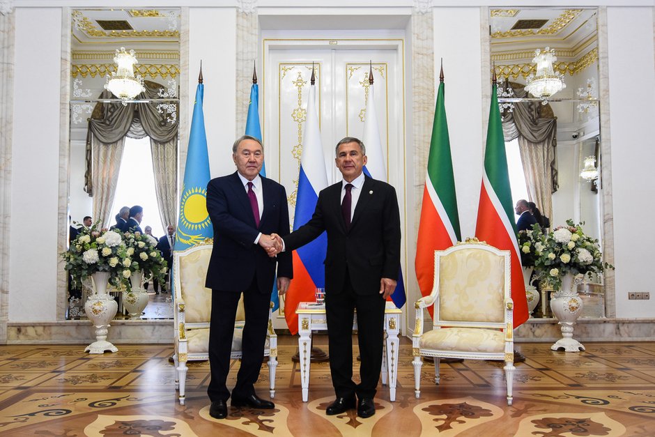 Президент Татарстана Рустам Минниханов на встрече с президентом Казахстана Нурсултаном Назарбаевым в своей резиденции поблагодарил его за сотрудничество с Россией и Татарстаном. В свою очередь Нурсултан Назарбаев отметил, что у Казахстана очень теплые отношения с Россией, а с Татарстаном они самые близкие. После беседы Назарбаев наградил Минниханова высшей наградой Республики Казахстан для не резидентов страны — орденом «Достык» (Дружба) I степени.