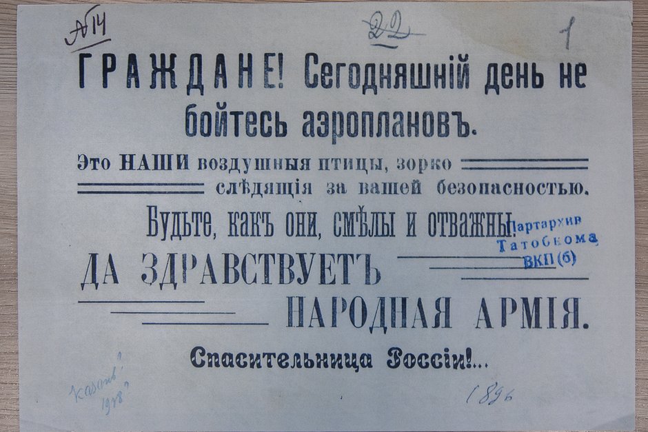 В выставочном зале Государственного комитета РТ по архивному делу открылась выставка, посвященная Гражданской войне. В экспозиции посетителям выставки представлены приказы, письма, краткие очерки, листовки противоборствующих сторон, а также фотодокументы и воспоминания участников событий августа – сентября 1918 года.