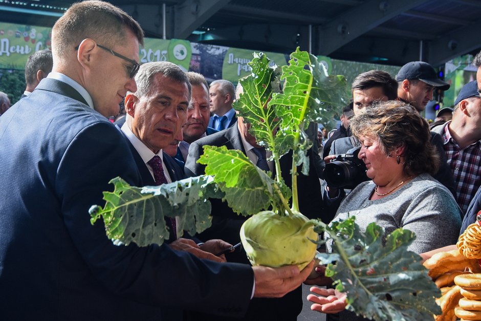 Сегодня в Агропромышленном парке «Казань» развернулась сельскохозяйственная ярмарка и выставка «День садовода – 2018». В выставке приняли участие производители Верхнеуслонского, Нижнекамского, Пестречинского, Тукаевского, Высокогорского, Зеленодольского, Лаишевского, Альметьевского районов, а также Казани и Набережных Челнов. Гостями ярмарки стали президент РТ Рустам Минниханов и министр сельского хозяйства и продовольствия республики Марат Ахметов.