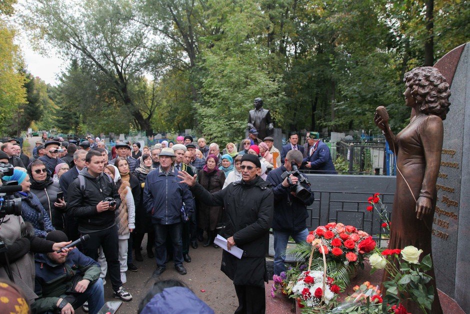 Сегодня на Ново-Татарском кладбище прошло открытие надгробного памятника, установленного на месте захоронения выдающейся певицы Альфии Авзаловой. Памятник был выполнен скульптором Фанилем Валиуллиным.