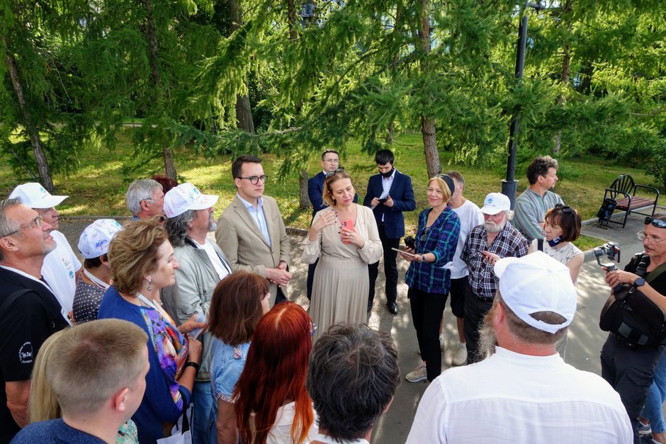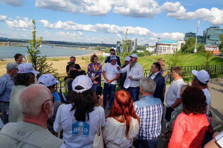 Министр культуры РТ Ирада Аюпова и ее коллега из Республики Коми Сергей Емельянов встретились сегодня с художниками, которые принимают участие во Всероссийском плэнере-симпозиуме «Со-творение». Встреча прошла в Фуксовском саду.