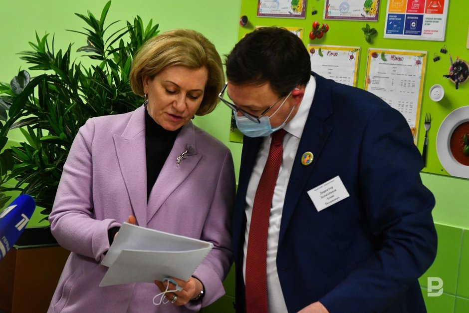 Главный санитарный врач России Анна Попова, прибывшая в Казань для участия в коллегии Роспотребнадзора по РТ, побывала сегодня в Департаменте продовольствия и социального питания Казани и казанском лицее №186, чтобы оценить, как организовано питание школьников в Татарстане. По словам Поповой, «вся система питания полностью соответствует нашим требованиям».
