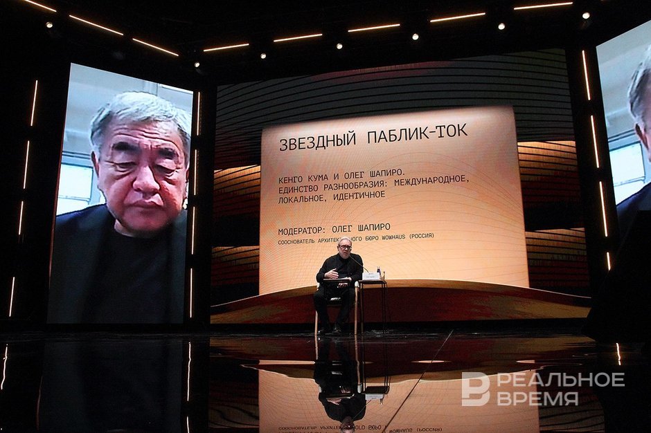 На Международном архитектурно-строительном форуме «Казаныш» прошел звездный паблик-ток авторов нового здания театра Камала — японского архитектора и основателя Kengo Kuma & Associates Кенго Кумы, который выступал онлайн, и сооснователя Архитектурного бюро Wowhaus Олега Шапиро. Они рассказали о проекте, о том, как он видоизменился по сравнению с конкурсной концепцией 2021 года и как его удалось воплотить в столь рекордные сроки. Как это было — в фоторепортаже «Реального времени».
