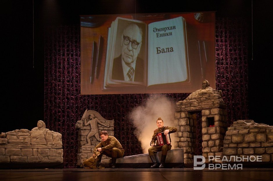 В театре Тинчурина представили премьеру спектакля «Слава Воинам Отечества!», посвященного 80-летию со Дня Победы в Великой Отечественной войне и героям СВО. Мелодрама основана на рассказах Амирхана Еники «Дитя», «Песня любви» и «Мать и дочь», инсценировку по ним написал постоянный автор театра Шамиль Фархутдинов, а режиссером стал Зульфат Закиров, сделавший постановку в формате спектакля-урока. Главные кадры с премьеры — в фоторепортаже «Реального времени».