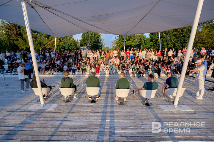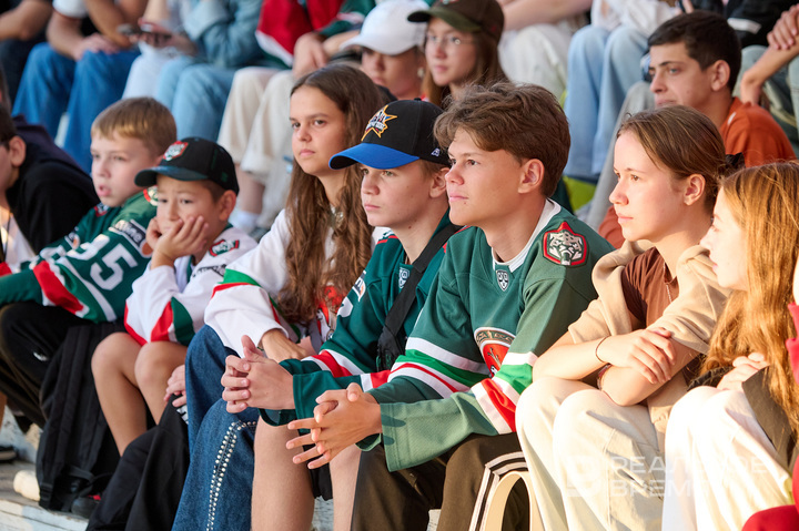 Перед собравшимися предстали главный тренер команды Анвар Гатиятулин, капитан Алексей Марченко, а также новобранцы «Ак Барса»: нападающий Брендон Байро, защитник Уайатт Калинюк, голкипер Михаил Бердин и форвард Михаил Фисенко.
