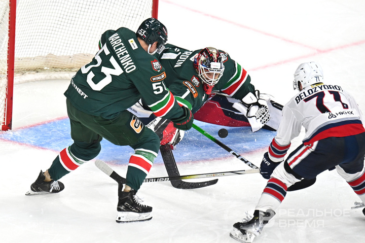 «Ак Барс» разгромил «Нефтехимик» со счетом 4:1 в контрольном матче в Казани. Команда Анвара Гатиятулина одержала вторую победу подряд в «предсезонке». В составе «Ак Барса» по разу отличились Кирилл Семенов, Артем Галимов, Михаил Фисенко и Александр Барабанов. У «Нефтехимика» шайбу забросил Никита Хоружев. Защитник «Ак Барса» Никита Лямкин записал в свой актив ассистентский покер, отдав четыре голевые передачи.