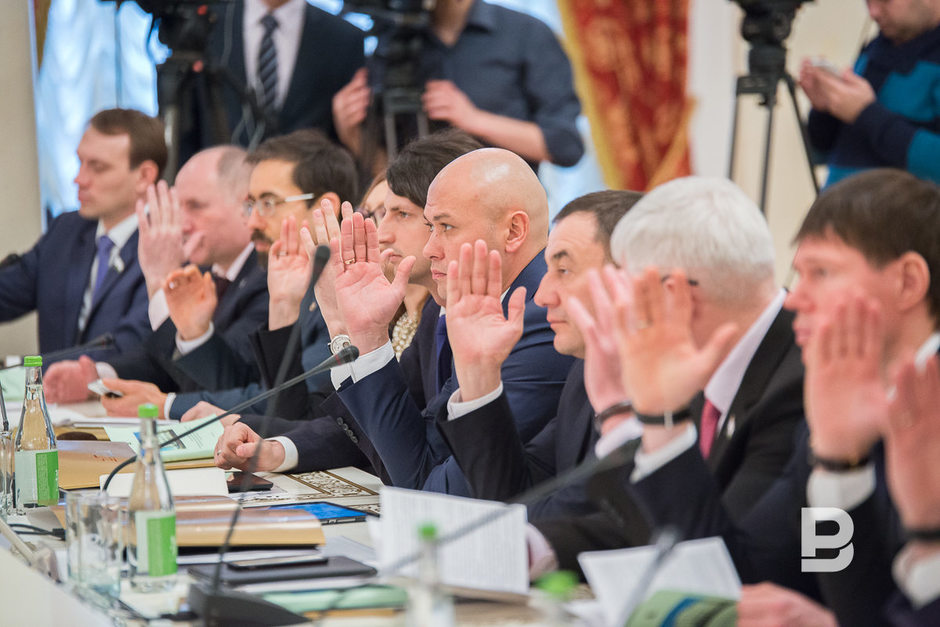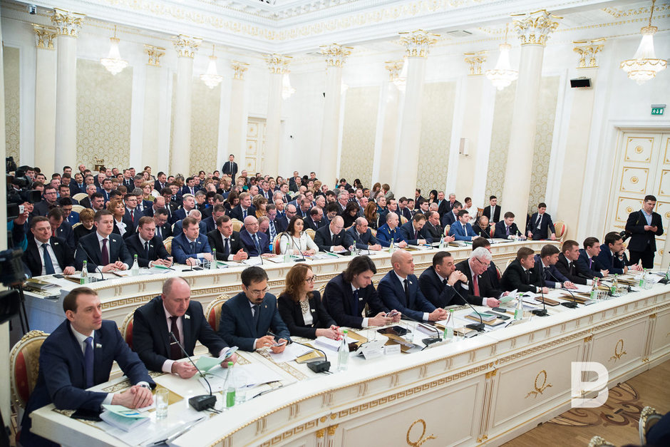 Сегодня в Казанской ратуше состоялась отчетная сессия Казанской городской думы третьего созыва. В ней принял участие президент РТ Рустам Минниханов. В повестке сессии значились 19 вопросов, в том числе отчеты о деятельности Думы, исполкома Казани и их руководителей.