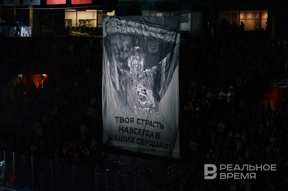 Перед матчем «Ак Барс» и «Авангард» почтили память погибшего болельщика Антона Агафонова, который утонул, спасая беременную женщину. Главные кадры встречи — в фоторепортаже «Реального времени».