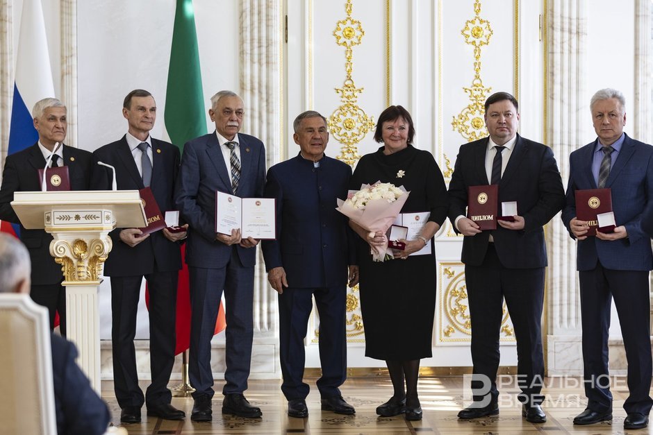 В Казанском Кремле прошла торжественная церемония вручения государственных наград в области науки и техники. Раис Татарстана Рустам Минниханов отметил рост финансирования науки и увеличение числа исследователей в республике. Три коллектива учёных получили премии, а пятерым исследователям присвоили звание «Заслуженный деятель науки РТ».