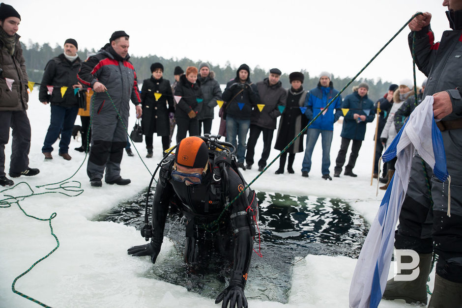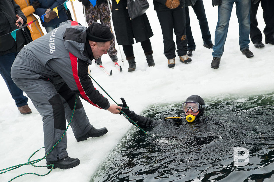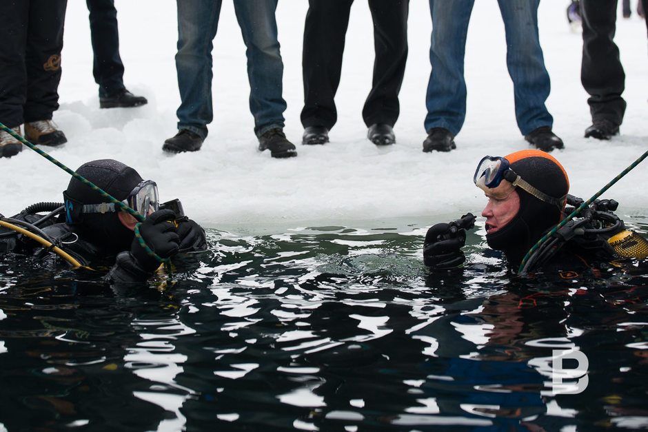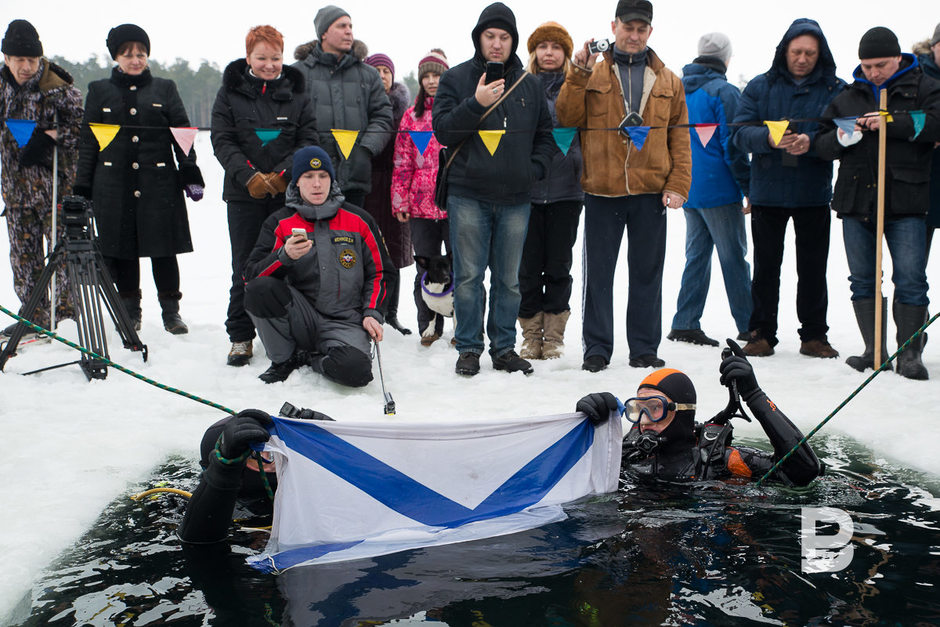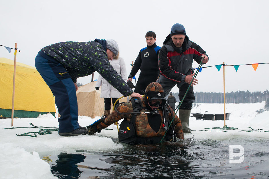 Сегодня на озере «Изумрудное» (карьер поселка Юдино) прошли показательные подледные погружения, посвященные 110-летию подводных сил России. Организаторами мероприятия выступили федерация подводной деятельности Республики Татарстан» совместно с ДОСААФ РТ и ОО «Морское собрание Республики Татарстан» при поддержке администрации Кировского и Московского районов Казани.