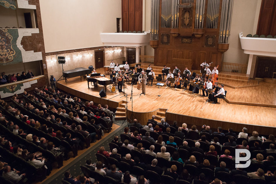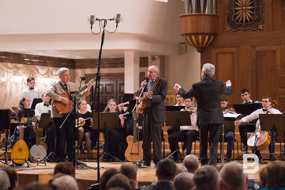 Сегодня в БКЗ им.Сайдашева прошел необычный вечер авторской песни. Известные казанские авторы-исполнители Владимир Муравьев, Валерий Боков, Сергей Бальцер, Юлия Зиганшина, Яков Маргулис, Виталий Харисов, Виктория Харисова, Эдуард Туманский впервые выступили в сопровождении оркестра Казанской консерватории Tatarica под управлением профессора Казанской консерватории Рината Халитова.