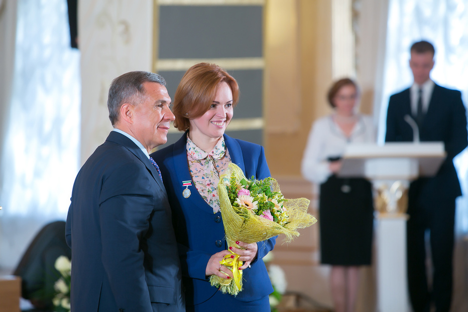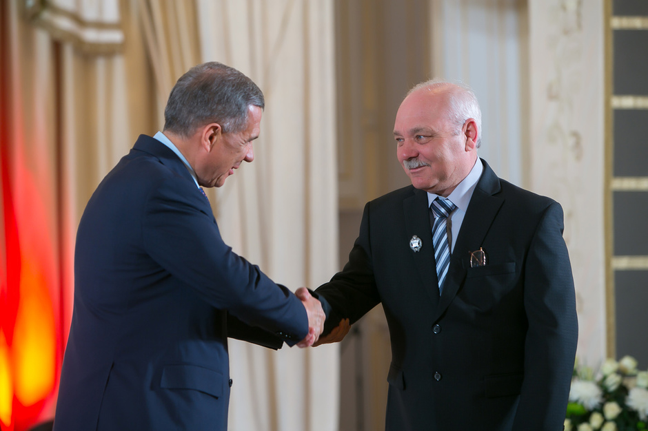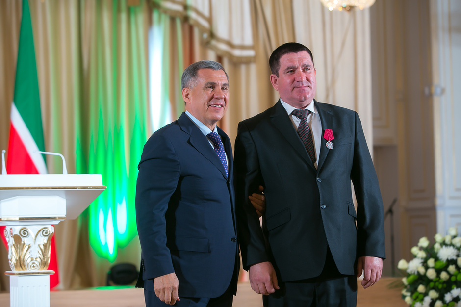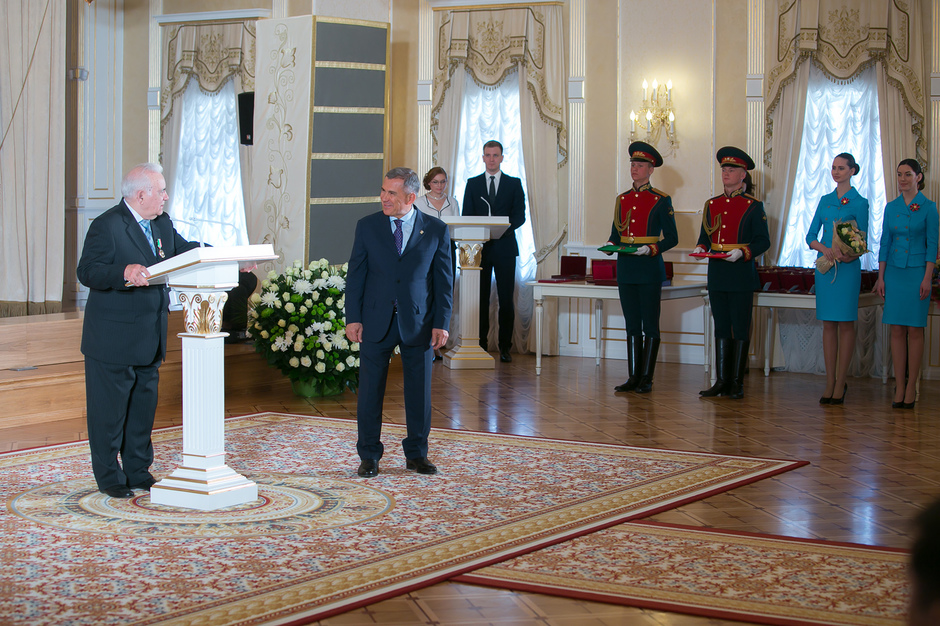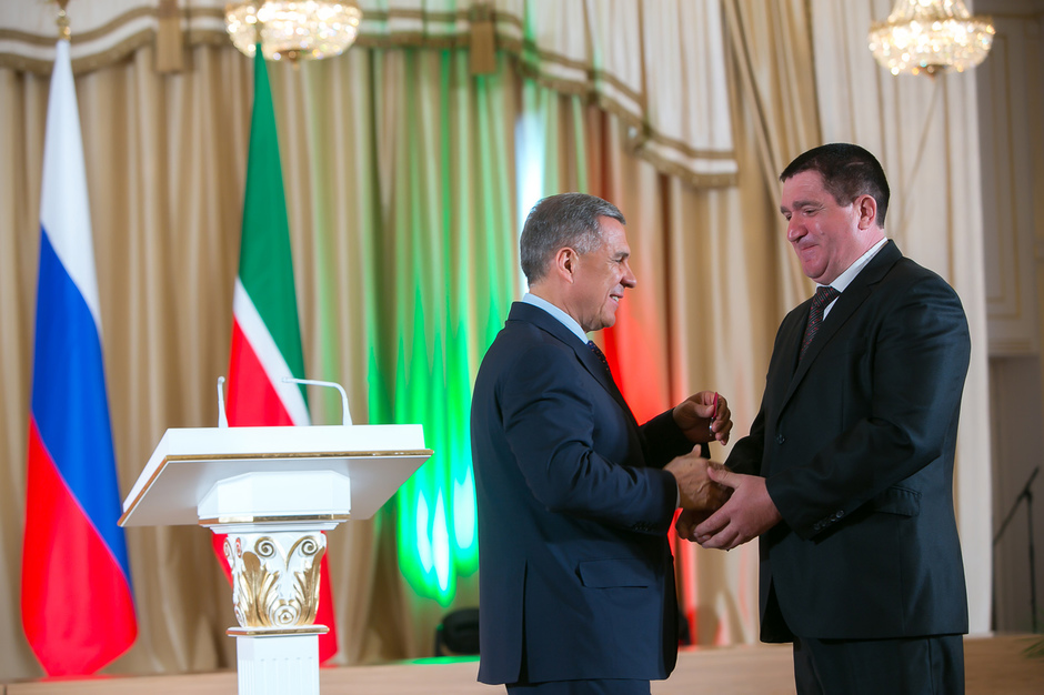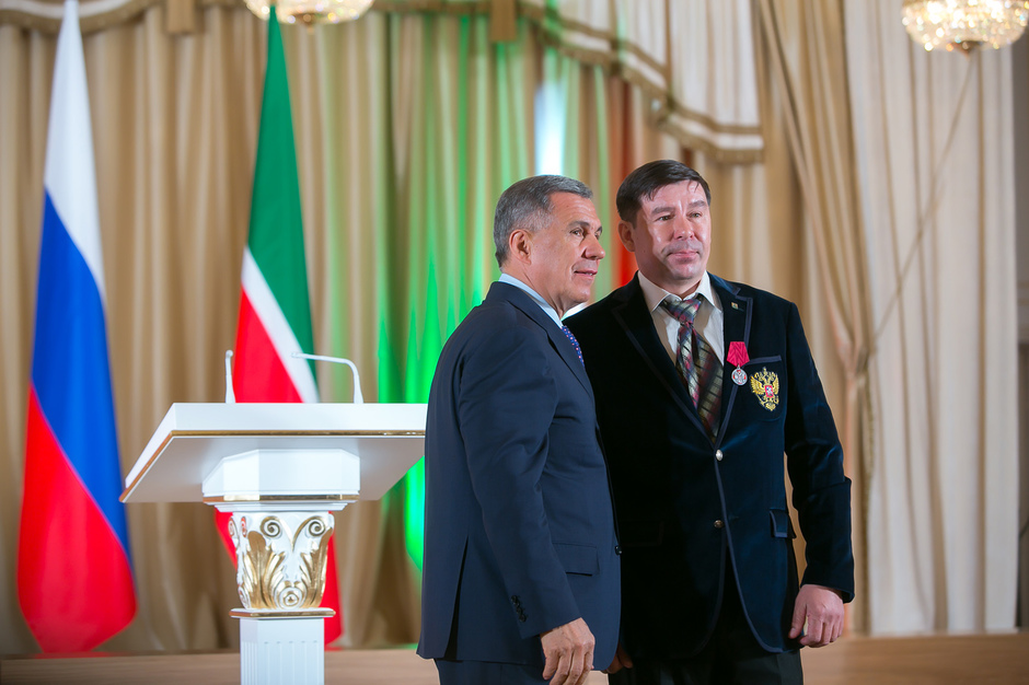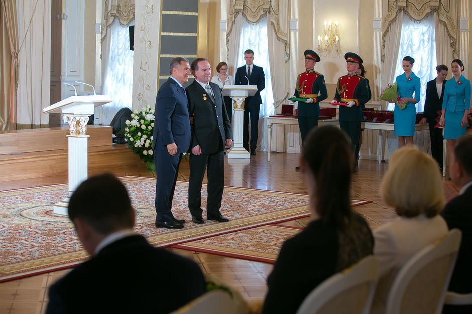 Государственные награды Российской Федерации и Республики Татарстан вручил сегодня президент РТ Рустам Минниханов наиболее отличившимся татарстанцам – представителям самых разных отраслей. Церемония награждения состоялась в казанском Кремле. Всего государственными наградами Российской Федерации и Республики Татарстан были поощрены 52 человека.