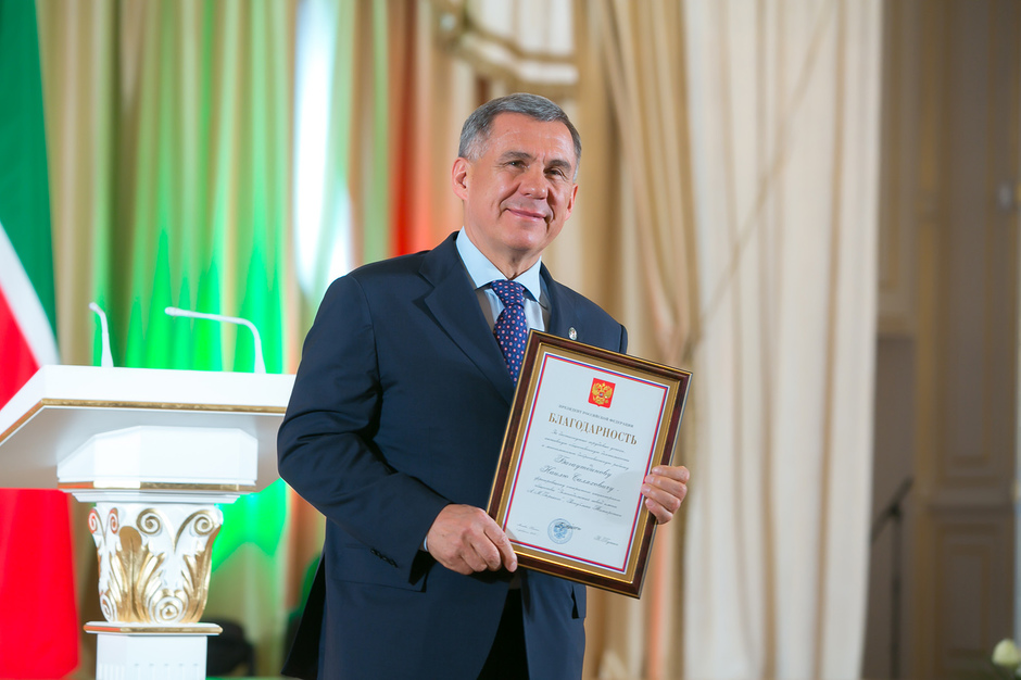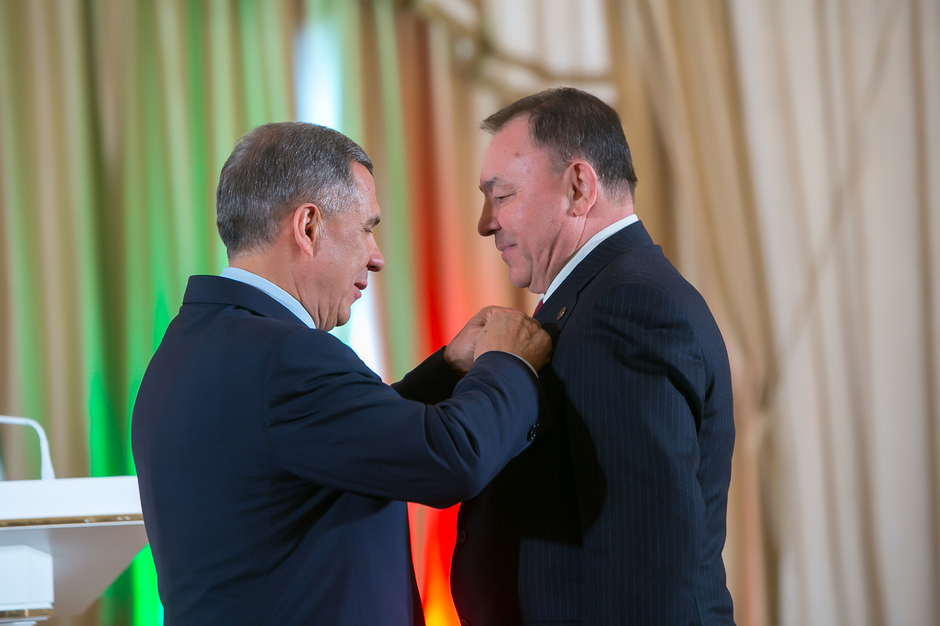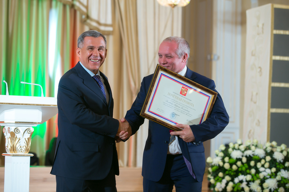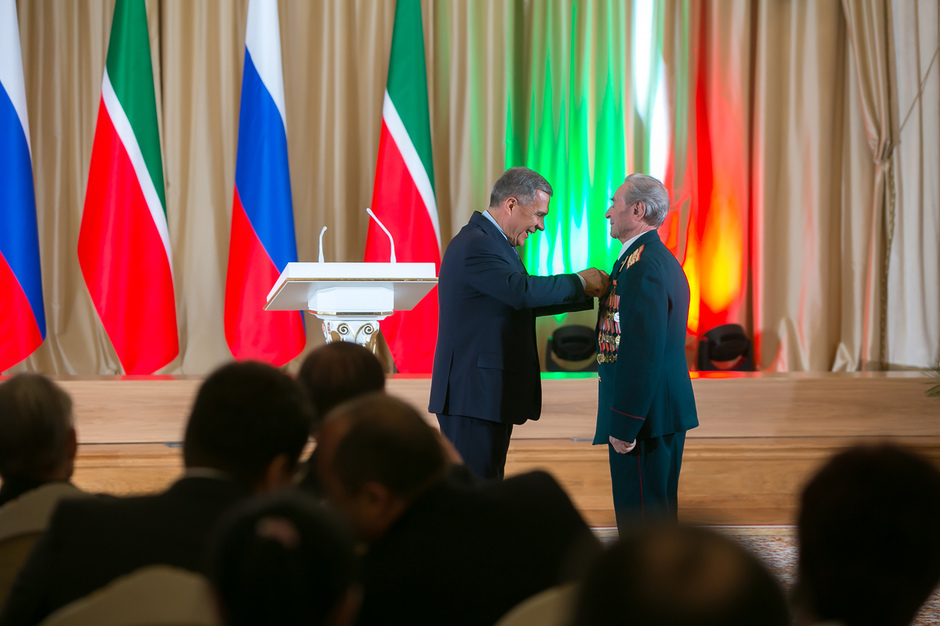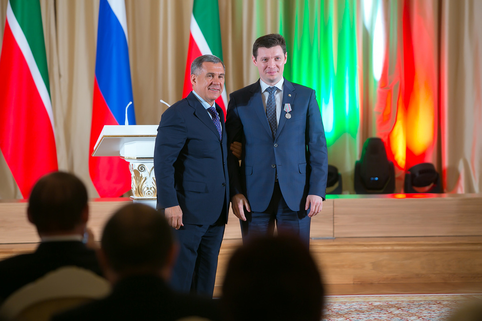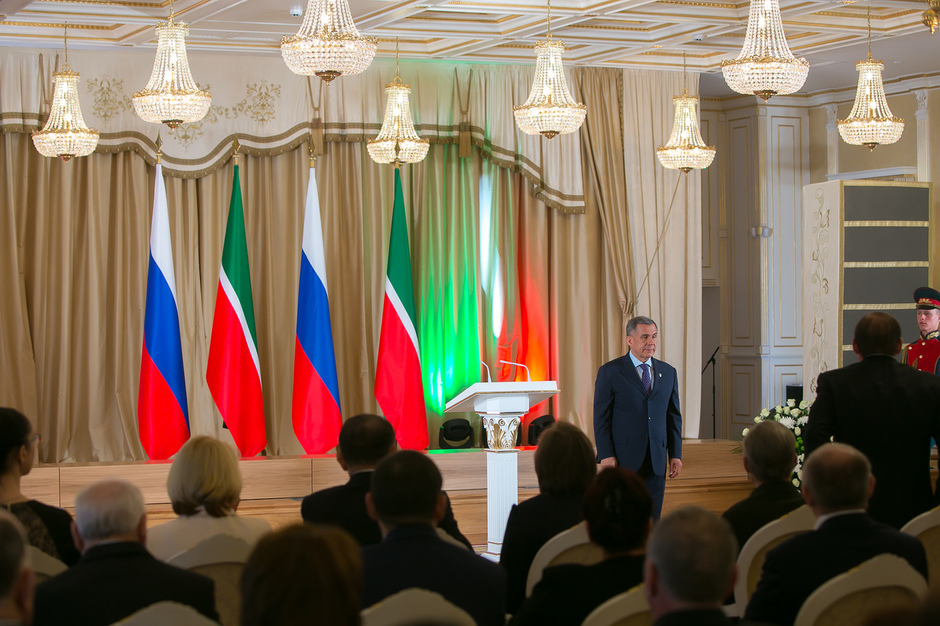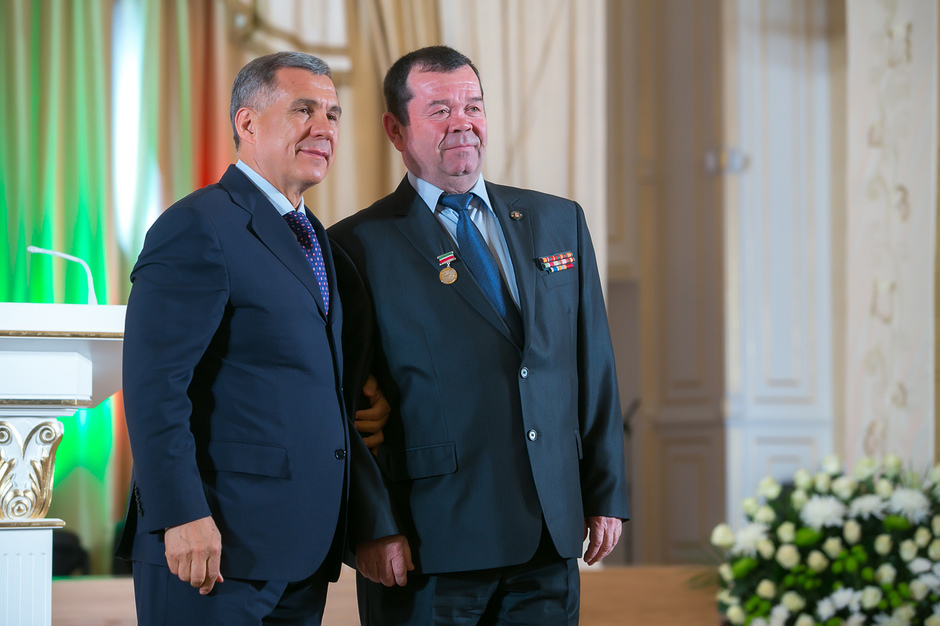 Государственные награды Российской Федерации и Республики Татарстан вручил сегодня президент РТ Рустам Минниханов наиболее отличившимся татарстанцам – представителям самых разных отраслей. Церемония награждения состоялась в казанском Кремле. Всего государственными наградами Российской Федерации и Республики Татарстан были поощрены 52 человека.