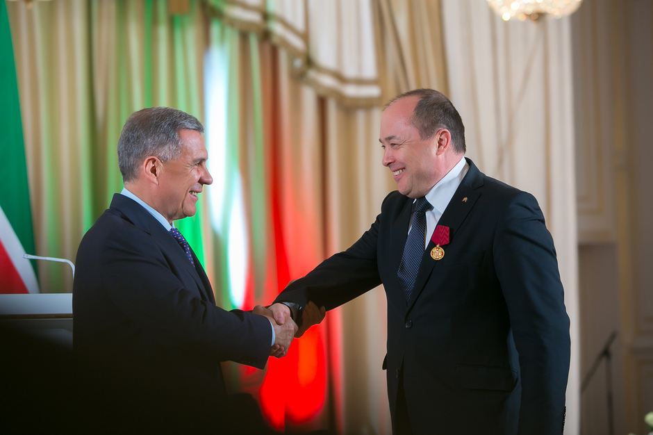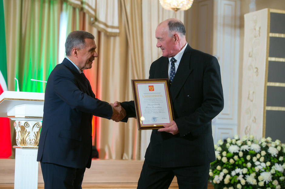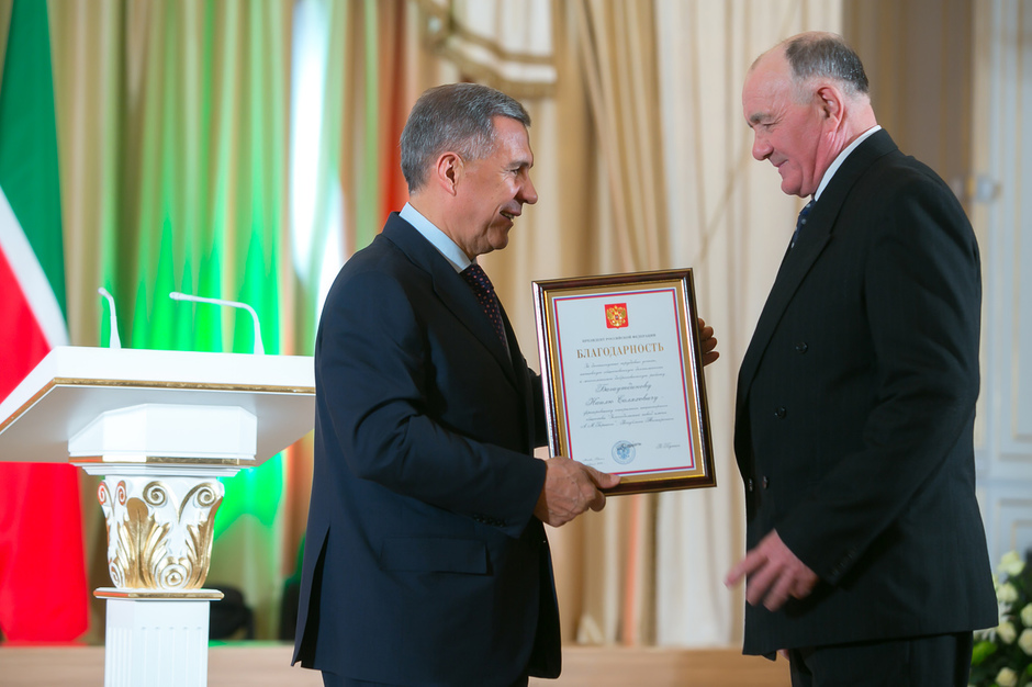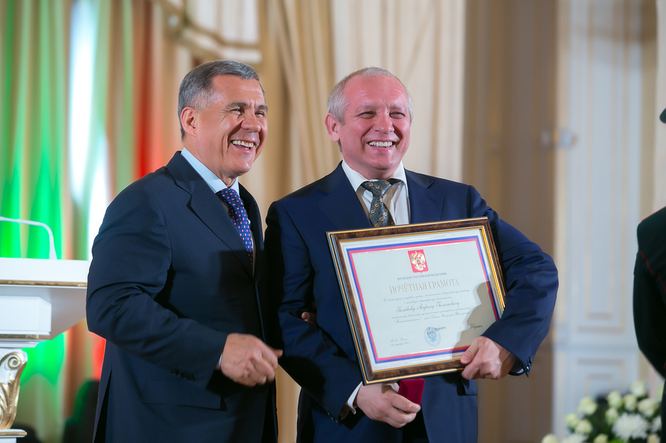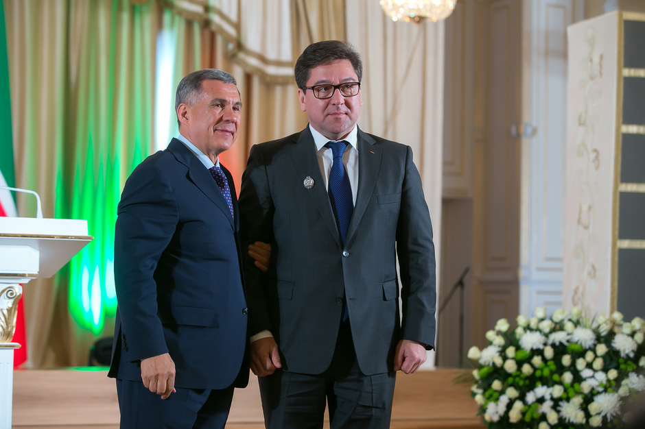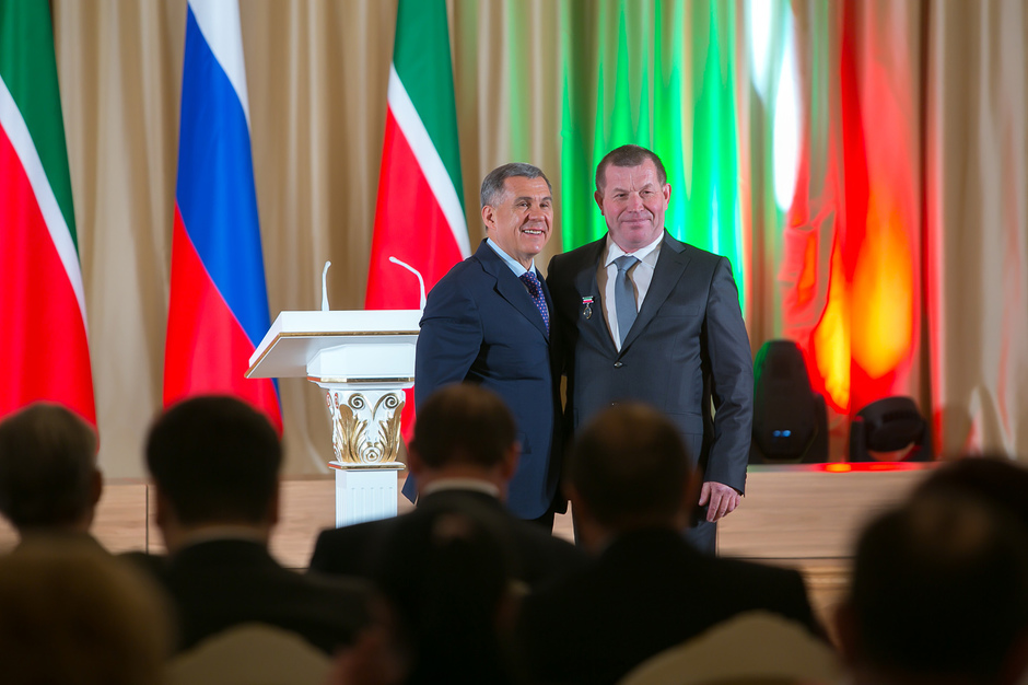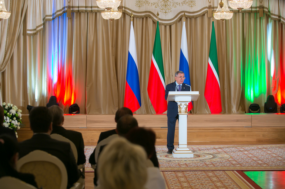 Государственные награды Российской Федерации и Республики Татарстан вручил сегодня президент РТ Рустам Минниханов наиболее отличившимся татарстанцам – представителям самых разных отраслей. Церемония награждения состоялась в казанском Кремле. Всего государственными наградами Российской Федерации и Республики Татарстан были поощрены 52 человека.