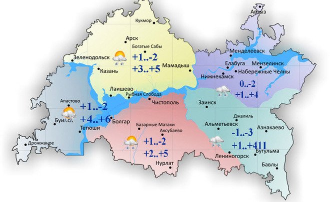 В Казани днем ожидается от +3°С до +5°С. В Набережных Челнах температура воздуха составит от +1°С до +4°С.