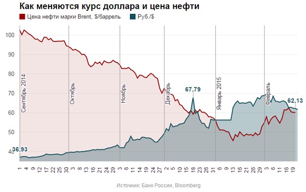 Эксперты издания полагают, что к концу марта за 1 доллар будут давать не меньше 68 рублей, к концу июня рубль укрепится до 60 рублей на 1 доллар. Значительным остается риск изменения цен на нефть, передает РБК со ссылкой на Bloomberg.