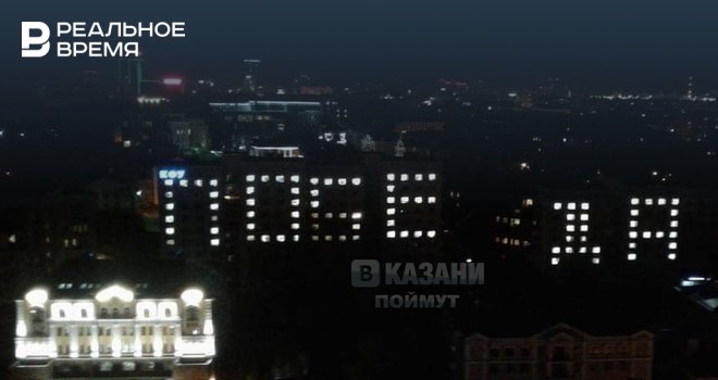 На зданиях общежитий КФУ в центре Казани появилась надпись «Победа». Фотографиями поделились пользователи соцсетей.