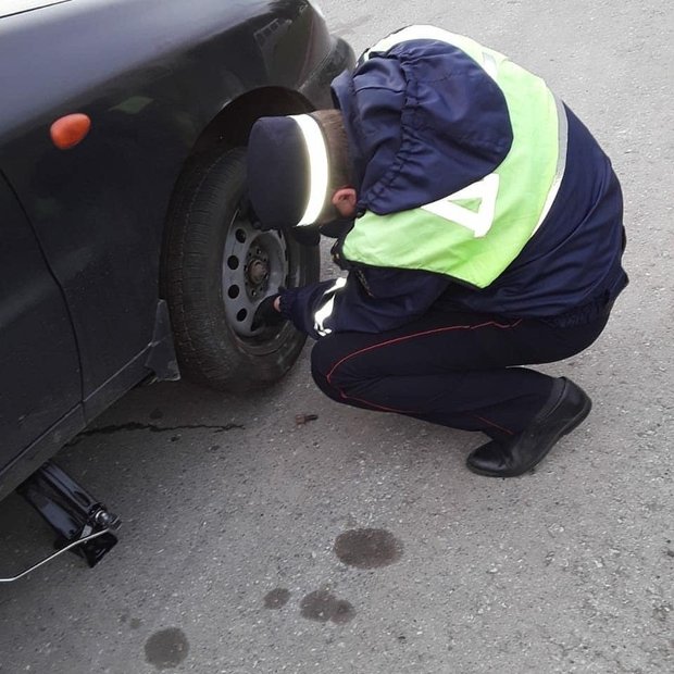 Водитель рассказал, что во время движения автомобиль начало резко «уводить» в сторону. Он остановился, чтобы проверить. Оказалось, что у автомобиля повреждено переднее колесо. Сам он является инвалидом и заменить колесо не может, а проезжающие автомобилисты не останавливались.