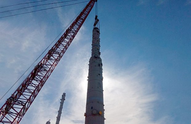 На этиленнике Нижнекамскнефтехима смонтирована колонна высотой 50 метров и весом 170 тонн