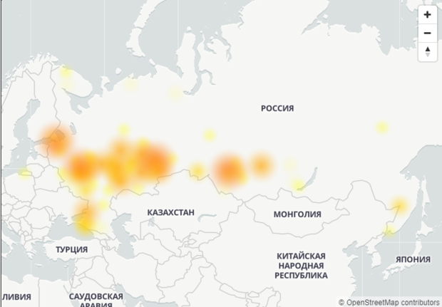 Большая часть сбоев зафиксирована в Санкт-Петербурге и Москве.