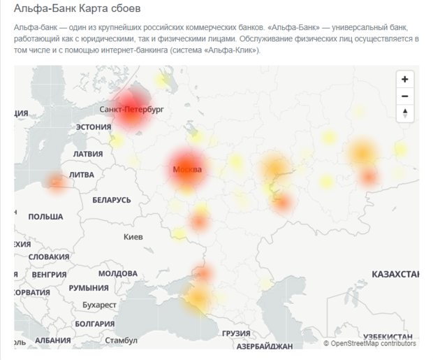 Пик сбоев у «Альфа-Банка», по данным сервиса Downdetector, пришелся на 10.45.