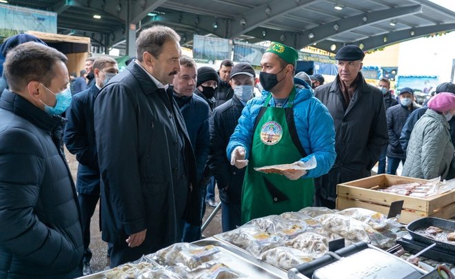 Гостем сегодняшней ярмарки в агропромпарке стал премьер-министр Татарстана Алексей Песошин — он прогулялся по рядам в компании министра сельского хозяйства и продовольствия Марата Зяббарова.