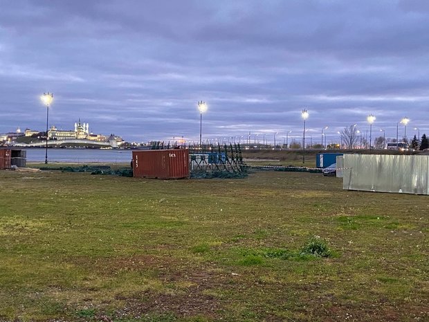 Пока рабочие монтируют металлическую конструкцию. Они рассказали корреспонденту «Реального времени», что работы начались только сегодня.