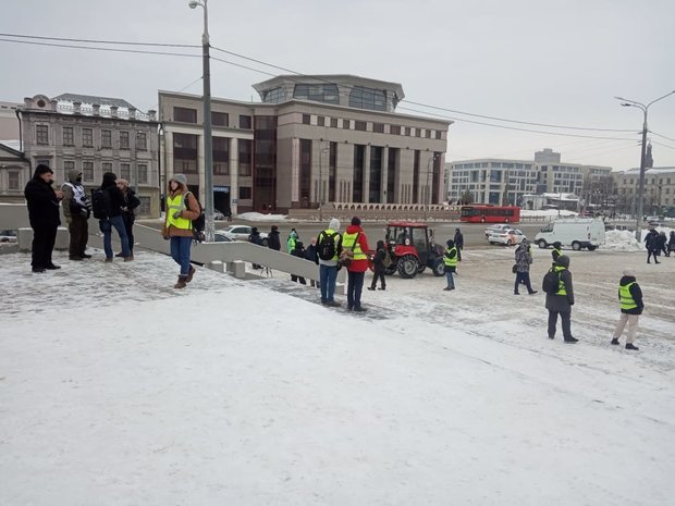 Митингующих на площади единицы. Какое-то время там стоял активист Равиль Гарифуллин с плакатами, предупреждающими об ответственности за участие в несанкционированных акциях. Сейчас он уже покинул площадь.
