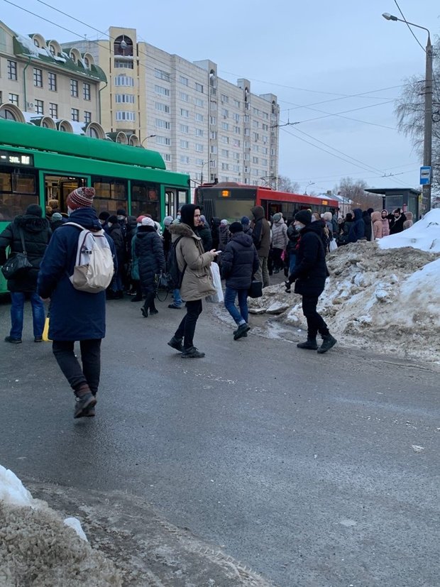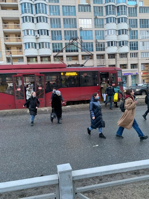 В Казани на улице Гвардейской сегодня вечером у переполненного трамвая выпала передняя дверь. Об этом сообщает корреспондент «Реального времени».