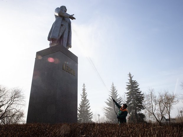 В Казани рабочие «Горводзеленхоза» приступили к мытью памятников. Сегодня рабочие привели в порядок территорию парка «Крылья Советов», отмыли памятник Ленину и восемь расположенных рядом бюстов.
