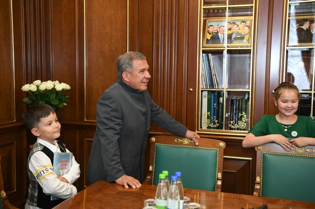Президент Татарстана Рустам Минниханов лично провел экскурсию для детей в своем рабочем кабинете. Об этом сообщает пресс-служба президента.